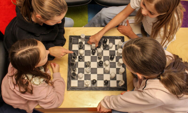 Vier Mädchen im Schachfieber